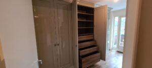Kastinterieur is uitgevoerd in walnotendecor met luxe laden op maat.