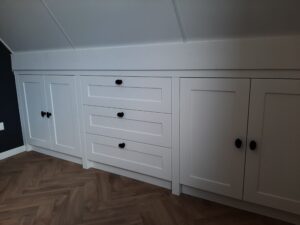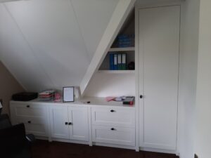 Omdat deze woning op de verdieping veel schuine wanden heeft bied maatwerk echt een uitkomst.