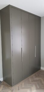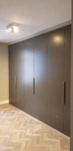 Deuren zijn op verzoek van de klant gespoten in Farrow & Ball kleur een erg mooi geheel geworden in combinatie met de prachtige visgraadvloer.