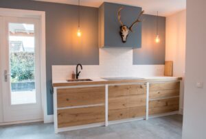 Dat zijn wel de kenmerken van een Scandinavische keuken die je terug vind in deze opdracht.